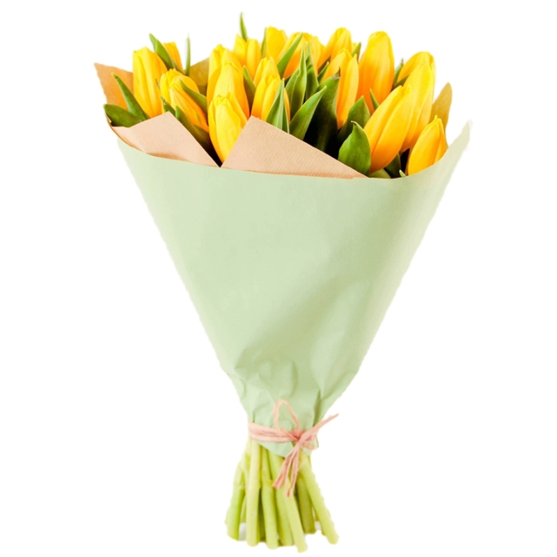 Букет из 21 желтого тюльпана в крафте