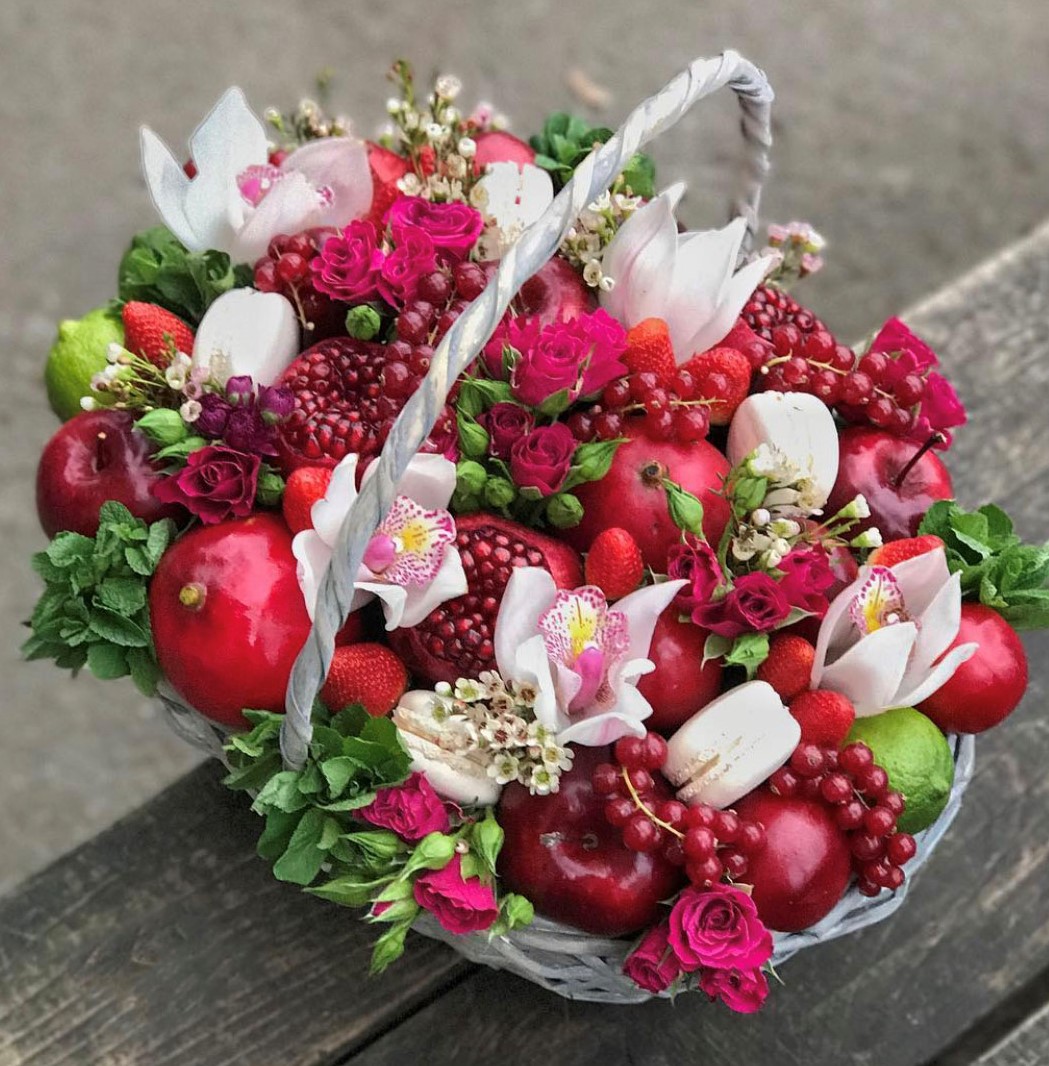 Корзина с фруктами и цветами